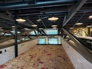 - A familiar detail upstairs: A replica of the main bar appears on the second-floor mezzanine, creating continuity across the venue’s gathering spaces.