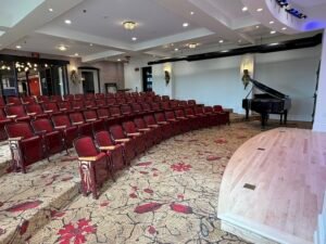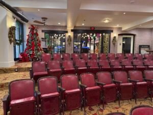 - Capacity: 59 built-in, historic seats. We can accommodate up to 180 guests in this space, with additional seating available.