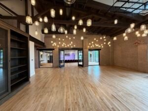 A bright, open setting where the building’s original textures meet clean finishes, creating an event venue with modern, upscale design that photographs beautifully.
