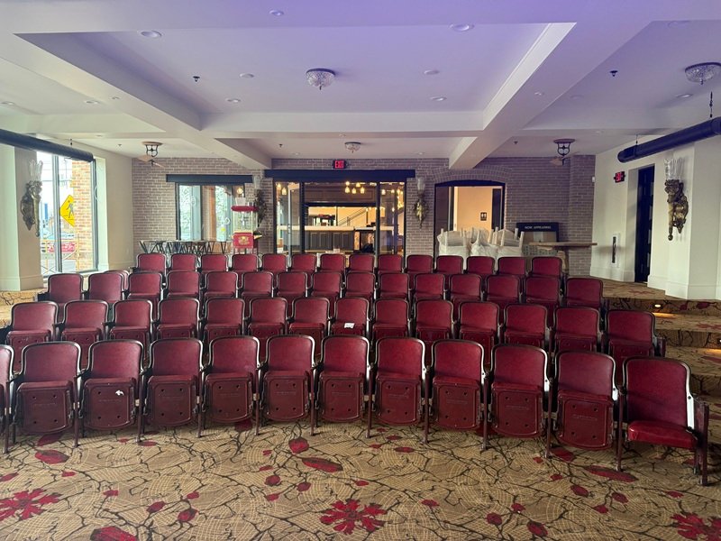 - Capacity: 59 built-in, historic seats. We can accommodate up to 180 guests in this space, with additional seating available.